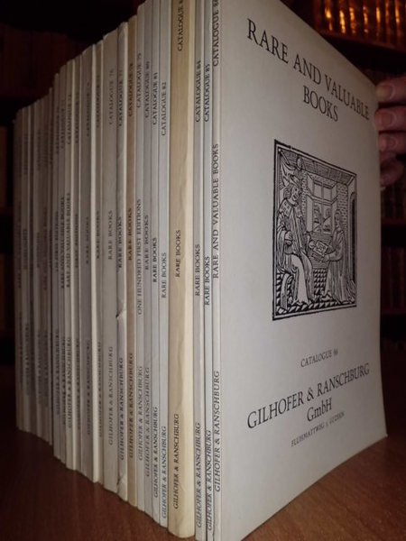 Luzern, Gilhofer & Ranschburg GmbH. Senza data (anni 70). 16th century books. Fine arts. Music. Philosophy. Economics. Peadagogics. Theology. History. Geography. Travels natural History. History of Medicine Psychiatry. Psychology. History of science. 28 cataloghi in - 8° grande, cartoncino editoriale. Dal n° 59 al n° 86. Descrizione accurata di centinaia di opere dal 1600 al 1800 con innumerevoli illustrazioni anche a piena pagina n.t. Le opere sono prezzate. Complessive 3000 pp. circa. In ottimo stato di conservazione.