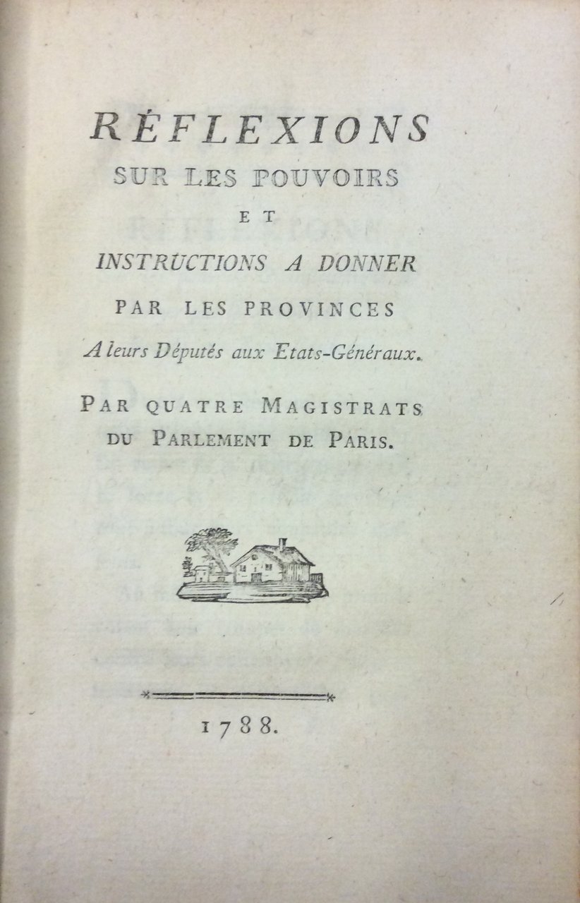REFLEXIONS SUR LES POUVOIRS ET INSTRUCTIONS A DONNER PAR LES PROVINCES A LEUR DEPUTES AUX ETATS-GENERAUX. - Par quatre magistrats du Parlement de Paris.