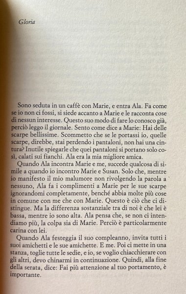 Si parla di birra, di rabbia e di amore. Della libertà di essere senza un soldo oppure ricchi sfondati. Si parla di pantaloni da acquistare e di lavori domestici, del giusto rossetto e del taglio di capelli più adatto, di scarpe, amicizia, aeroporti e ovviamente di amiche, della difficoltà di trovare l'uomo giusto, di viaggi in treno e di televisione. E di tante altre cose. Il libro parla di tutto ciò che è veramente importante nella vita, ma lo fa in modo inedito. C'è anche una storia, e alcuni personaggi maschili, ma tutto ciò è abbastanza irrilevante.
