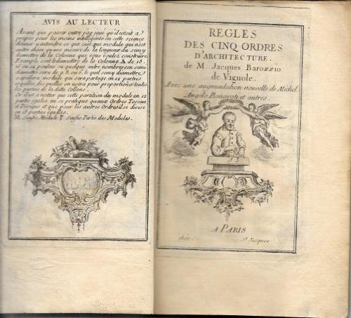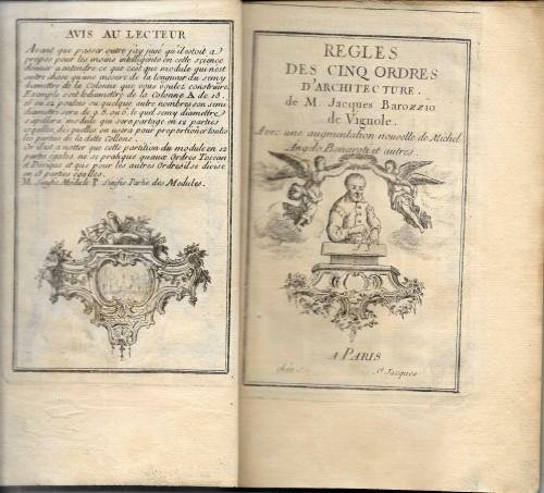 Regles des cinq ordres d'architecture de M. Jacques Barozzio de Vignole. Avec une augmentation nouvelle de Michel Angelo Bonaroti et autres