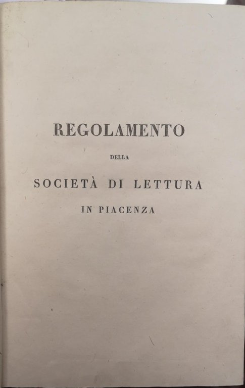 REGOLAMENTO DELLA SOCIETA DI LETTURA IN PIACENZA.