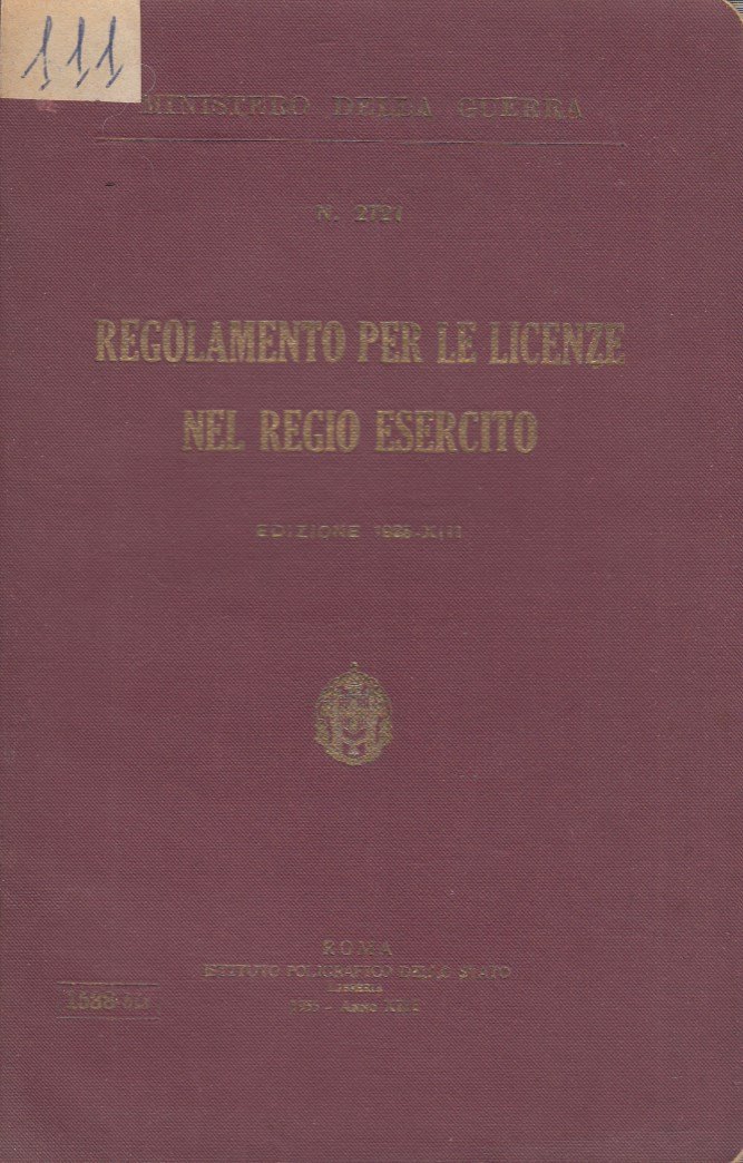Regolamento per le licenze nel regio esercito | Libros antiguos y modernos | Ministero Della Guerra