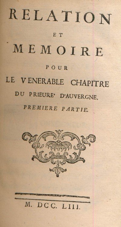 Relation et Mémoire pour le Vénérable Chapitre du Prieuré d'Auvergne