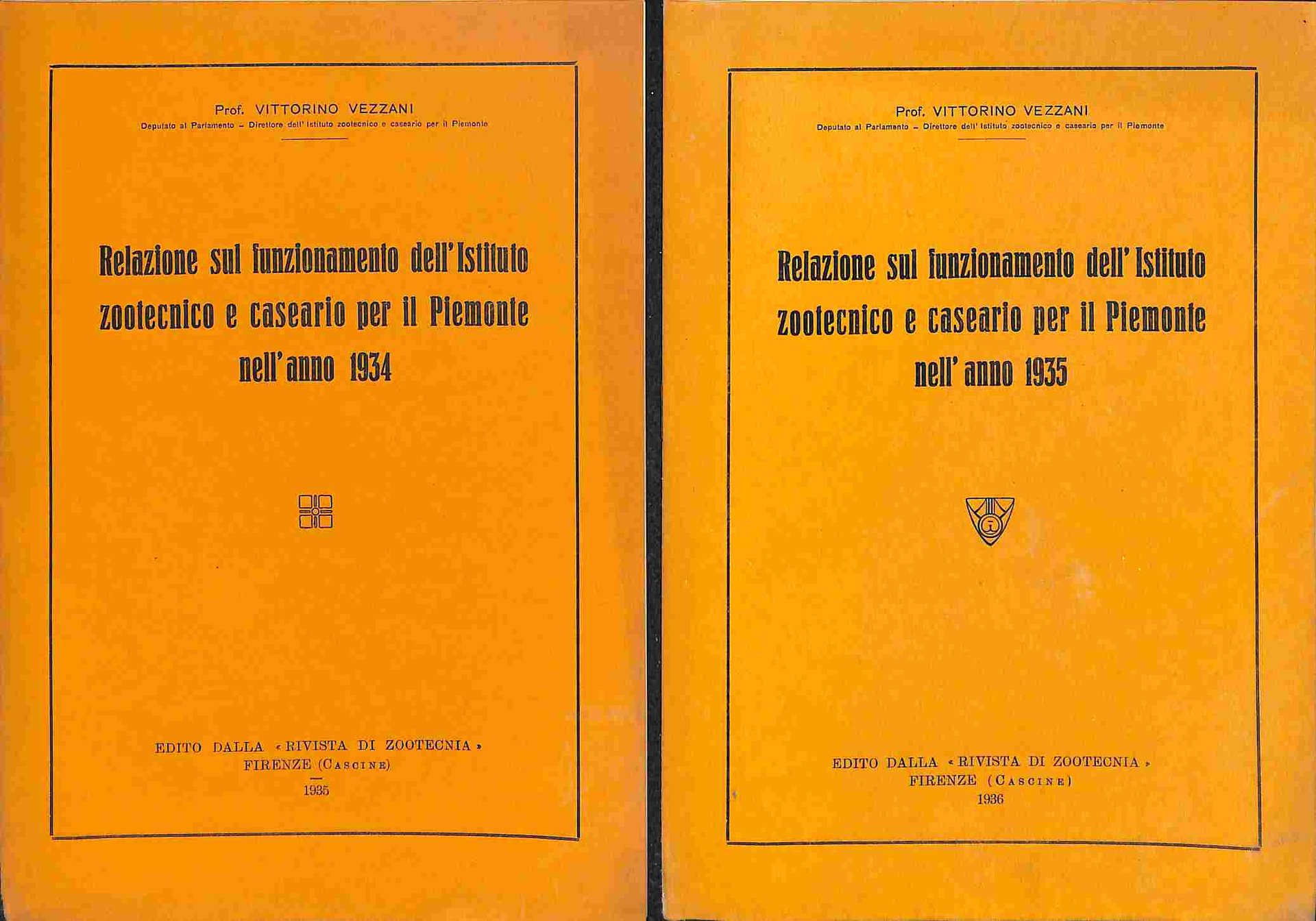 2 opuscoli cm 17 x 24, pp. 16; 16. Brossura editoriale. Due opuscoli, estratti editoriali dalla "Rivista di zootecnia", con le relazioni sul funzionamento dell'Istituto zootecnico e caseario per il Piemonte nell'anno 1934 e 1935.