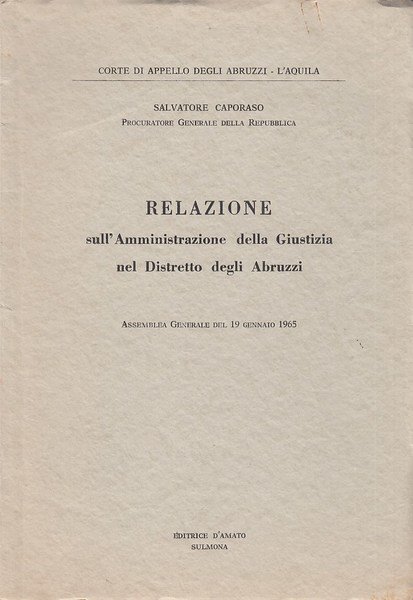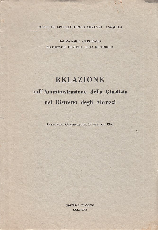 Relazione sull'Amministrazione della Giustizia nel Distretto degli Abruzzi | Libros antiguos y modernos | Caporaso Salvatore