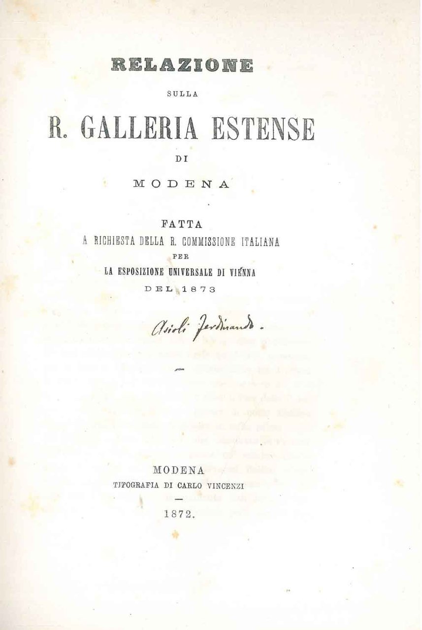 Relazione sulla Galleria Estense di Modena fatta a richiesta della R. Commissione italiana per la esposizione universale di Vienna del 1873