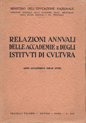 Relazioni annuali delle Accademie e degli Istituti di Cultura 1939-40
