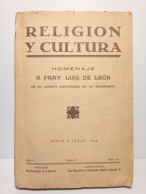 Religión y Cultura. Año 1 (1928), Tomo II, Nº 6-7, Junio y Julio: [Monográfico en] HOMENAJE A FRAY LUIS DE LEON en el Cuarto Centenario de su Nacimiento