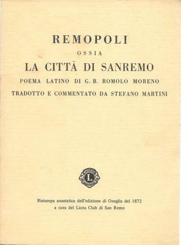 REMOPOLI ossia LA CITTÀ DI SANREMO poema latino di G. B. Romolo Moreno tradotto e commentato da Stefano Martini