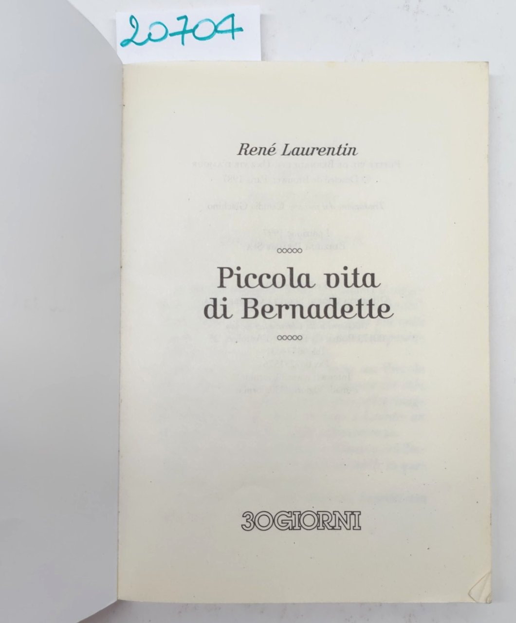 Renée Laurentin Piccola vita di Bernadette introduzione di Giulio Andreotti 30 giorni 2° ed. 2004