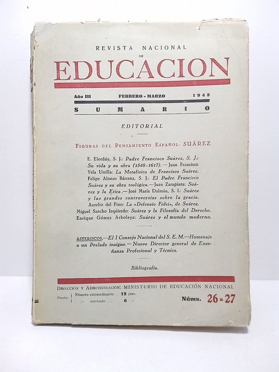 Revista Nacional de Educación. Madrid, Año III, Febrero-Marzo, 1943, Nos. 26-27. Nº especial dedicado al P. FRANCISCO SUAREZ