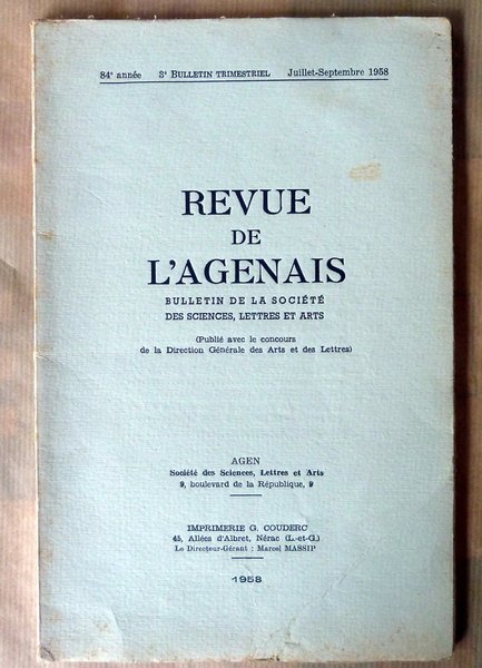 Revue de l'Agenais. Juillet-Septembre 1958.
