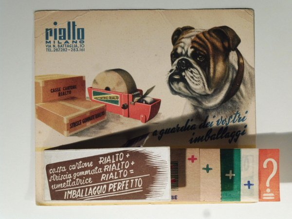Rialto. Milano. A guardia dei vostri imballaggi. (Cartoncino pubblicitario - campionario).