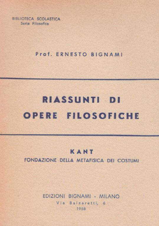 Riassunti di opere filosofiche: KANT. Fondazione della metafisica dei costumi