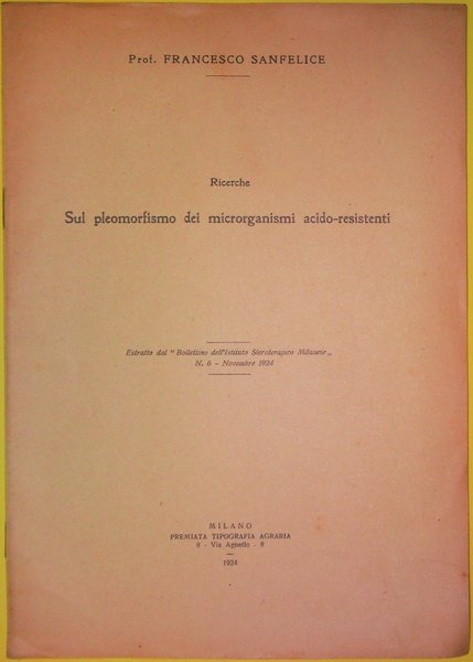 Ricerche sul pleomorfismo dei microrganismi acido-resistenti. Estratto dal "Bollettino dell'Istituto Sieroterapico Milanese" n. 6 - Novembre 1924