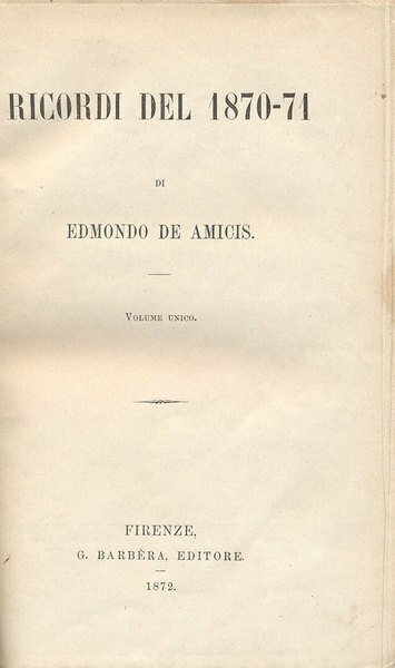 In-16 gr. mm. 180x116), tela coeva, titolo oro al dorso, pp. VI,232. Manca l'Indice alla fine. Edizione originale. Cfr. Parenti "Rarita' bibliograf. dell'800",VII, p. 272.