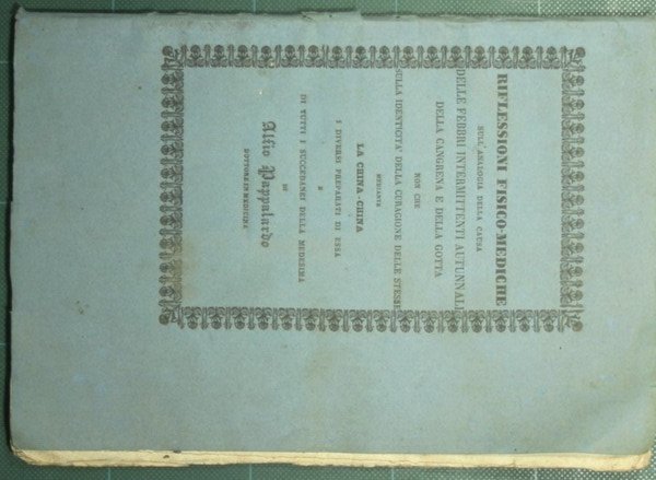 Riflessioni fisico-mediche sull'analogia della causa delle febbri intermittenti autunnali della cangrena e della gotta non che sulla identicità della curagione delle stesse mediante la china-china