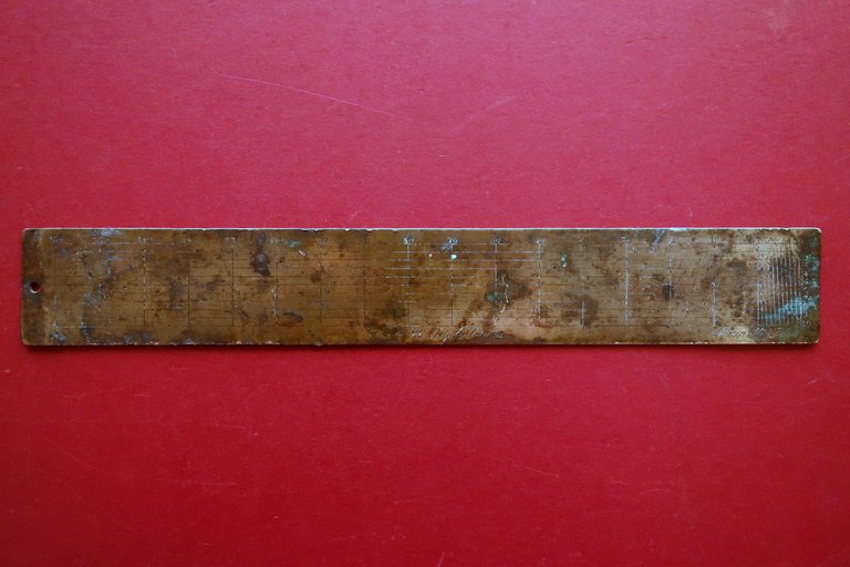 Righello Geometrico in Ottone Scala di Tripla Canna Brunetti Bologna Met‡ '800