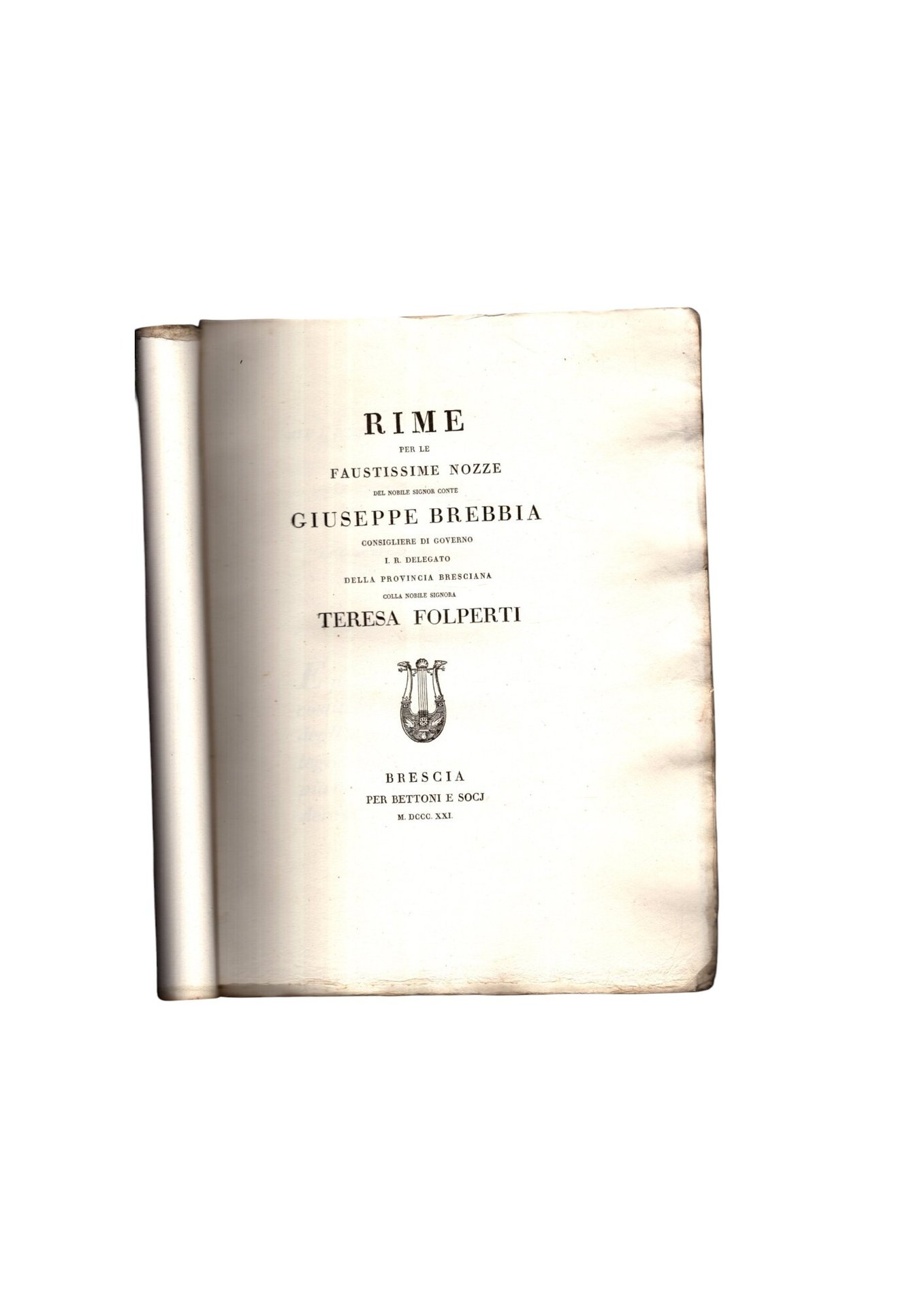 Rime Per Le Faustissime Nozze Del Nobile Sig. Conte Giuseppe Brebbia Con Teresa Folperti
