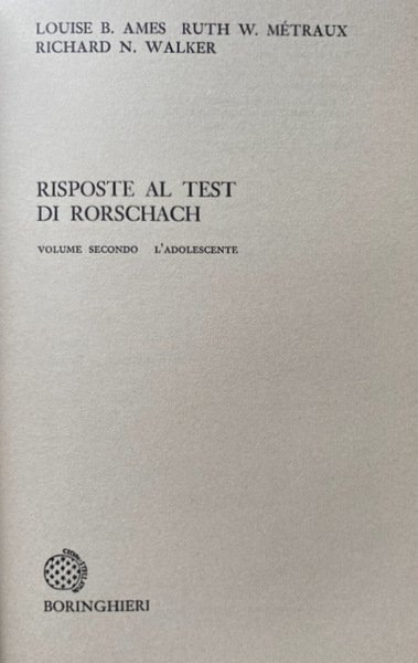 Titolo originale: Adolescent Rorschach Responses. Developmental Trends from Ten to Sixteen Years