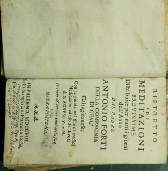 Ristretto di meditazioni brevissime distribuite per tutti i giorni dell'anno dal Padre Antonio Forti della Compagnia di Gesù Caltagironese