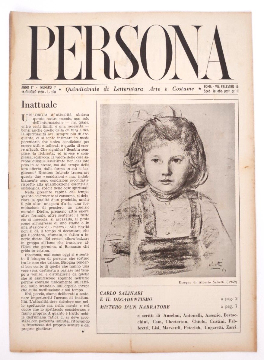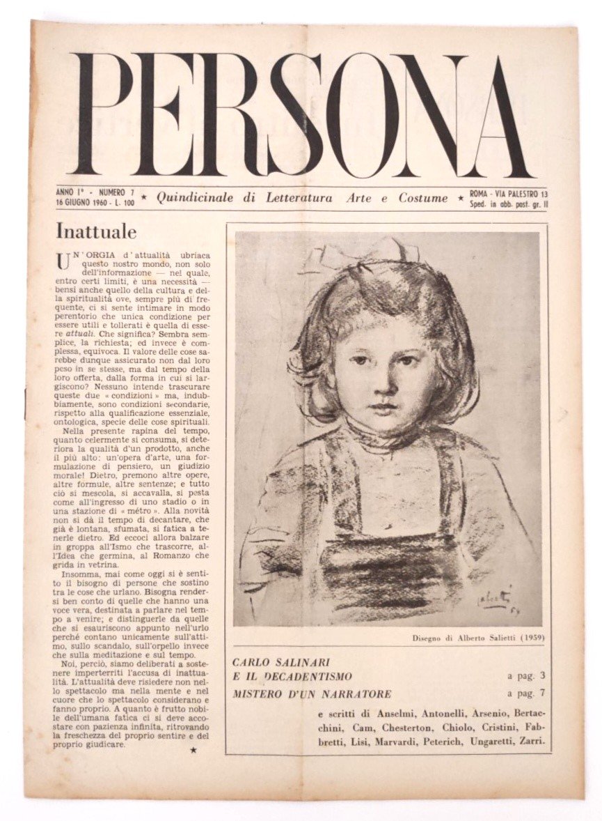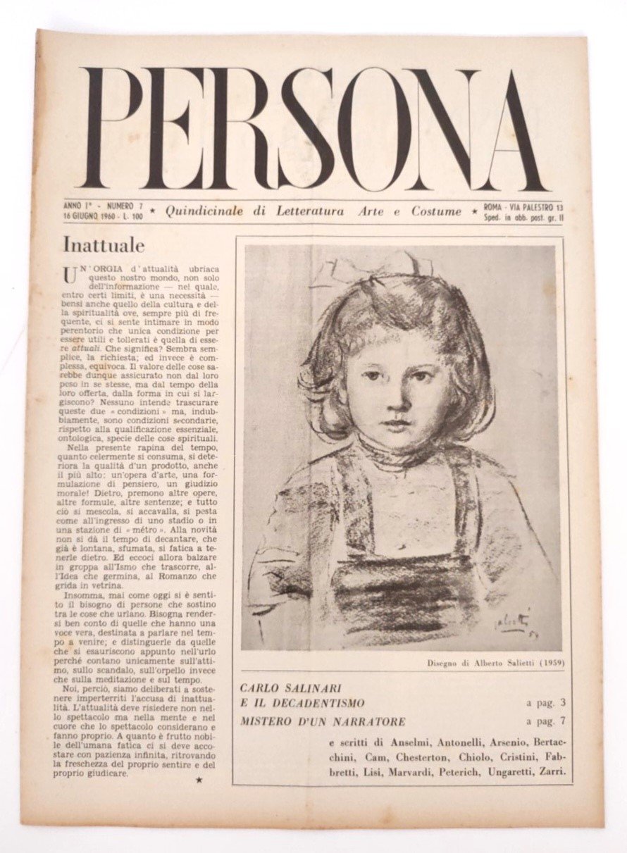 Rivista d'epoca "PERSONA" Anno I n. 7 1960 quindicinale di letteratura, arte costume
