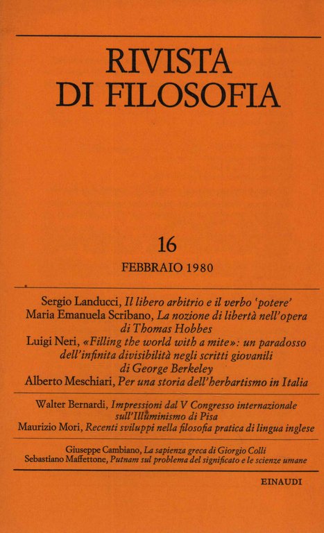 Rivista di filosofia. Febbraio 1980 - Fascicolo I (Volume LXXI n.16)