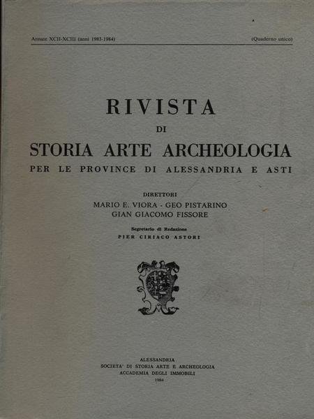Rivista di storia arte archeologia per le province di Alessandria e Asti Annata XCII-XCIII (anno 1983-1984)