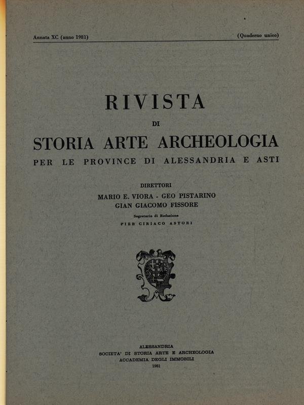 Rivista di storia arte archeologia per le province di Alessandria e Asti. XC/1981