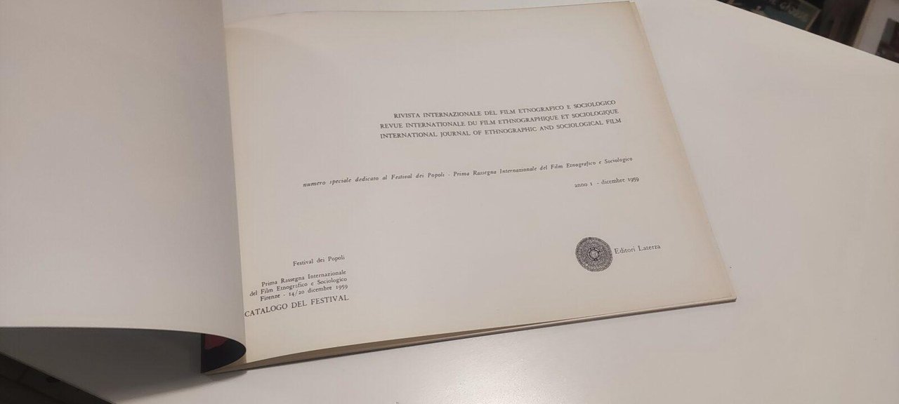 Rivista Internazionale del Film Etnografico e Sociologico. Anno I Dicembre 1959 Laterza Libro in ottime condizioni, minimi segni del tempo. Non esitate a contattarci per altre foto o richieste. Saremo lieti di soddisfare ogni vostra esigenza.