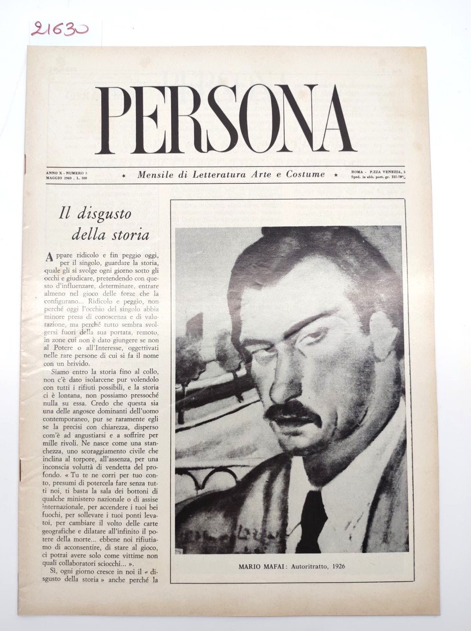 "Mensile di Letteratura Arte e Costume". La copertina presenta un'illustrazione di Mario Mafai, intitolata "Autoritratto, 1926". L'articolo principale è intitolato "Il disgusto della storia". La rivista si presenta in condizioni accettabili, con i normali segni del tempo come leggere bruniture delle pagine, piccoli strappi marginali e lievi pieghe dimensioni cm 34 x 24,5