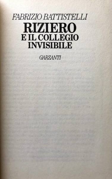 RIZIERO E IL COLLEGIO INVISIBILE | Libros antiguos y modernos | Fabrizio Battistelli