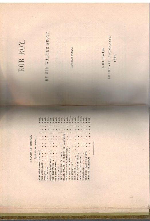 Legatura in tela verde rigida con tassello al dorso impresso in oro. Non comune edizione della "Collection of British Authors" . Legatura solida pagine naturalmente ambrate ai bordi, opera ben conservata,In lingua inglese