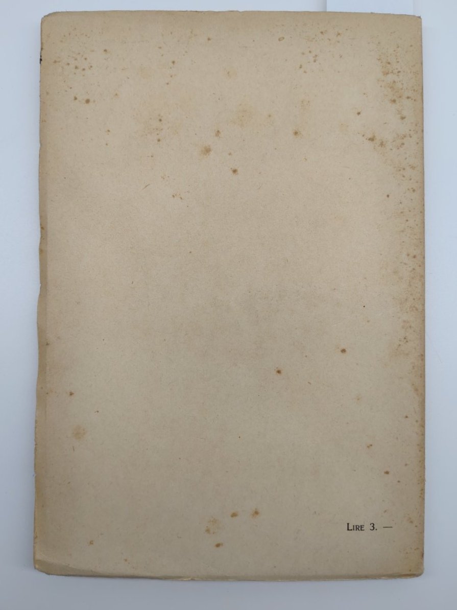 Roma Mater I, legatura morbida editoriale con pieghe e un piccolo strappo al margine esterno dei piatti, bruniture fioriture e sporcizia ai piatti e al dorso, etichetta di catalogazione al margine interno del piatto anteriore, tagli bruniti con fioriture, fioriture alle pagine interne maggiormente presenti alle prime ed ultime pagine, numero pagine certo dimensione cm 25 x 17