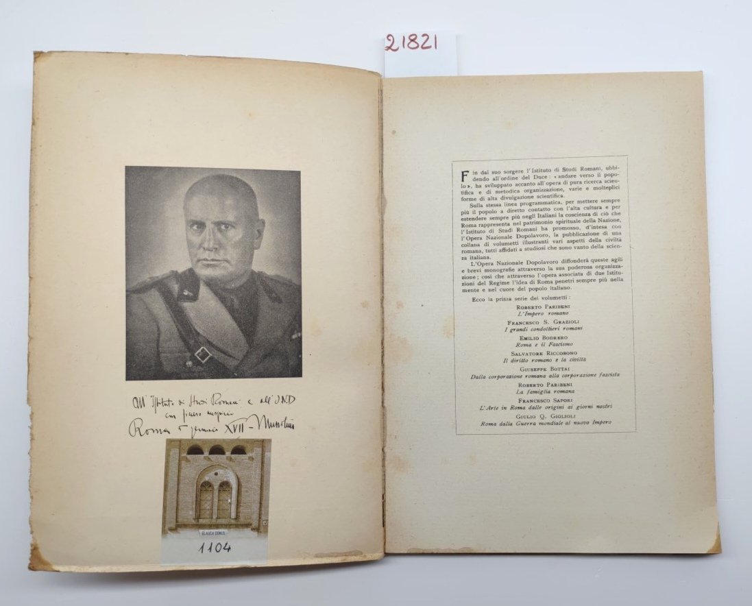 Roma Mater VI, legatura morbida editoriale con aloni sporcizie e fioriture ai piatti e al dorso, piccole pieghe ai margini dei piatti, tagli bruniti impolverati con una macchia all'angolo inferiore esterno, vedere immagine, alcune fioriture alle pagine interne maggiormente presenti alle prime pagine, numero pagine 72 + indice dimensioni cm 25 x 17