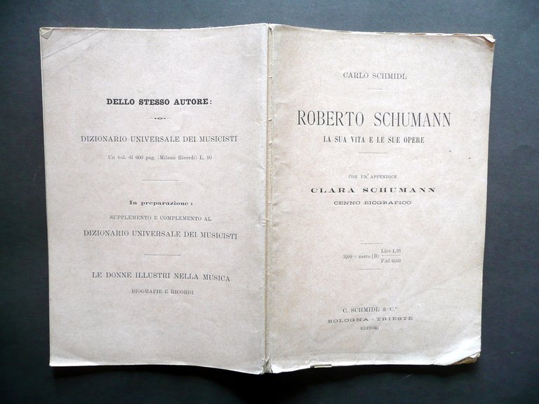 Roberto Schumann Vita e Opere Carlo Schmidl Bologna Trieste 1889 Musica Raro