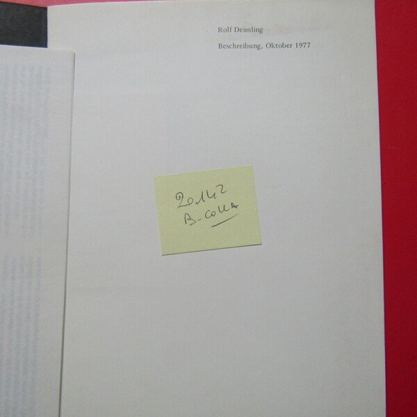 Catalogo mostra Beschreibung , ottobre 1977 , testo tedesco , legatura a punto metallico, formato 17x24 , pagine 16 , illustrato in nero, allegato testo con traduzione inglese, ottime condizioni - 20142