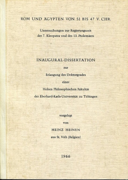 Rom und Ägypten von 51 bis 47 v. Chr. Untersuchungen zur Regierungszeit der 7. Kleopatra und des 13. Ptolemäers. Inaugural-Dissertation.