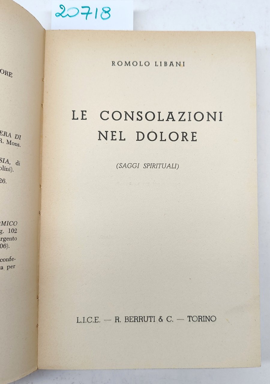 Romolo Libani Le consolazioni nel dolore Saggi spirituali edizioni L.I.C.E senza data