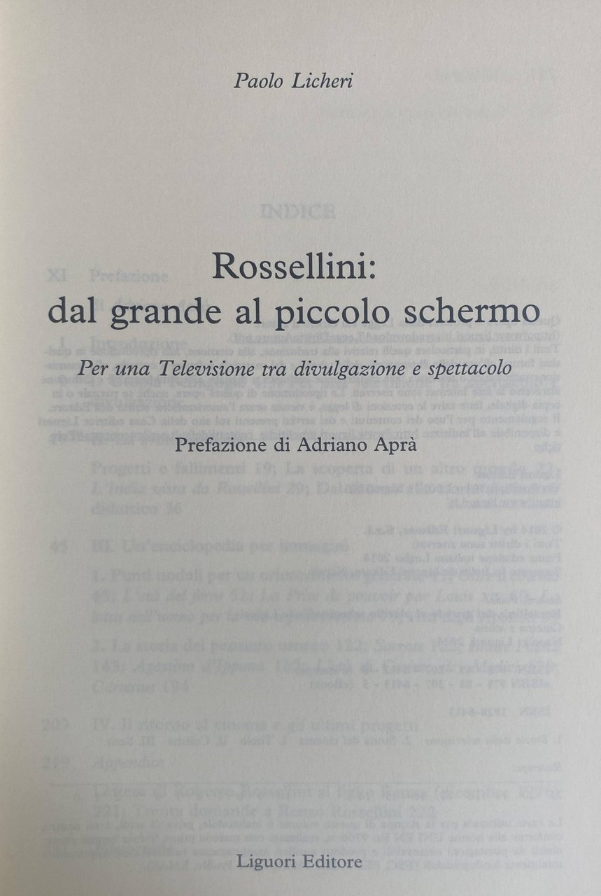 ROSSELLINI DAL GRANDE AL PICCOLO SCHERMO. PER UNA TELEVISIONE TRA DIVULGAZIONE E SPETTACOLO | Libros antiguos y modernos | Paolo Licheri, Adriano Aprà
