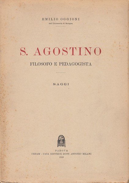 S. Agostino. Filosofo e Pedagogista | Libros antiguos y modernos | Oggioni Emilio