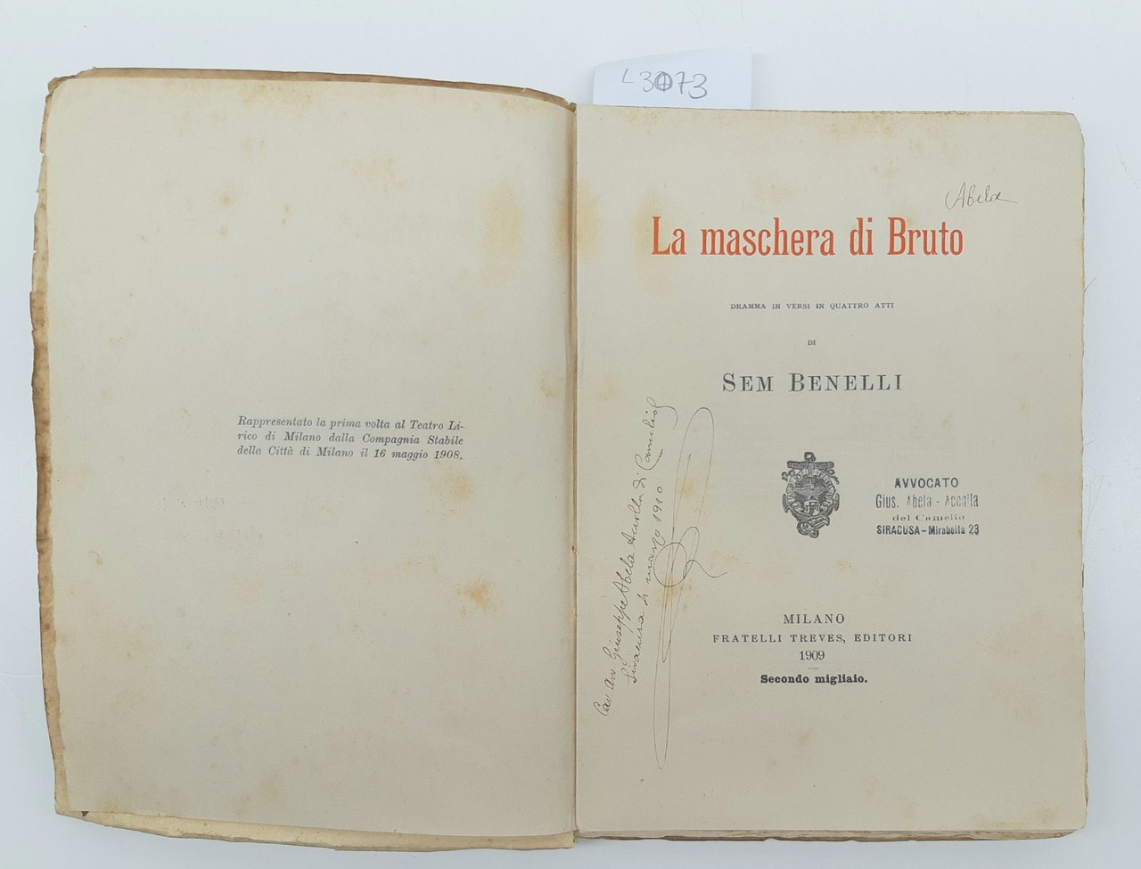 S. Benelli La Maschera Di Bruto 2° migliaio 1909 Treves Abela Carboneria