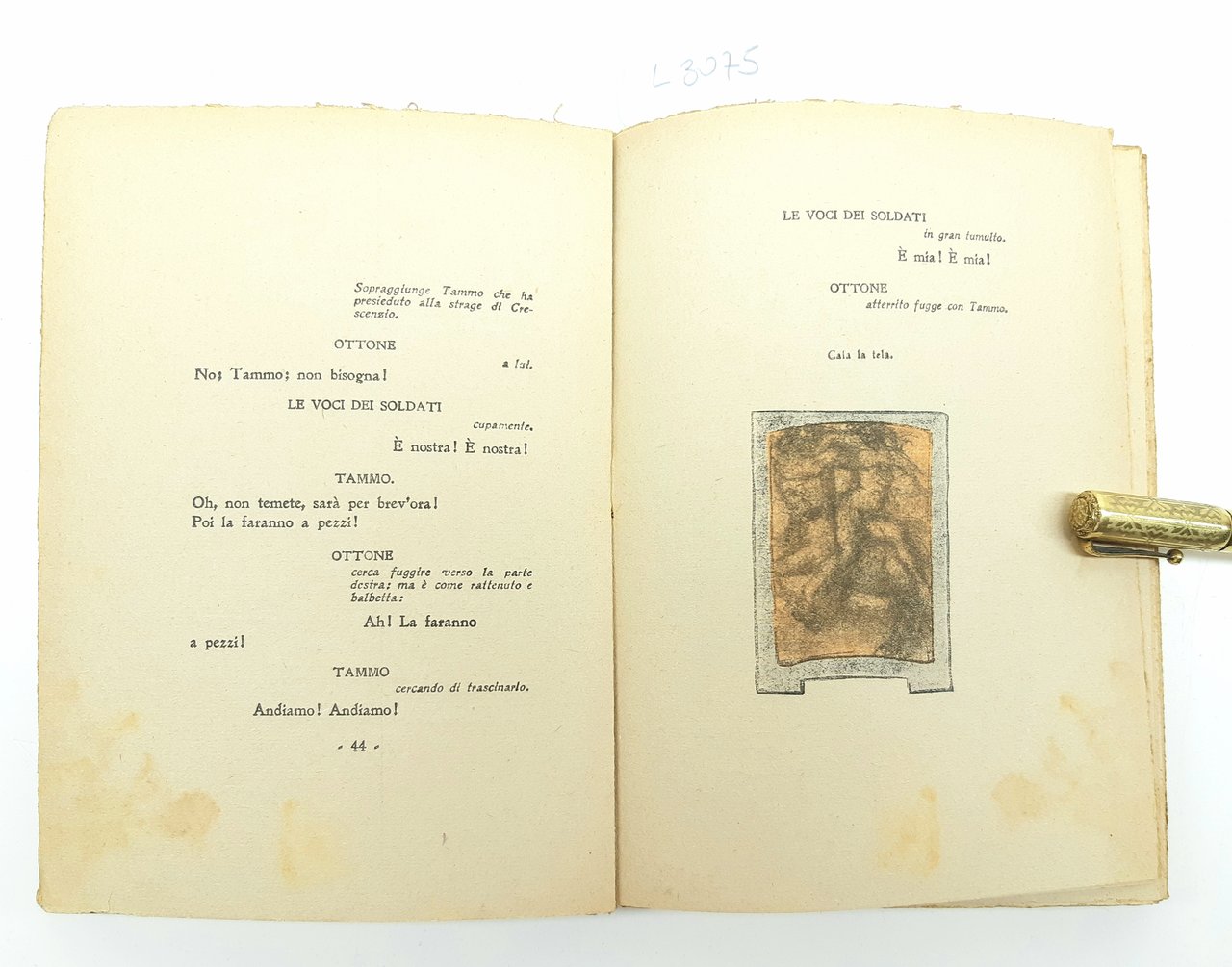 copertina morbida editoriale con bruniture e aloni diffusi ai piatti e al dorso, piccoli strappi e mancanze ai margini, tagli irregolari bruniti, antiporta con firma e timbro di possesso, frontespizio con firme e timbro di possesso, fioriture alle pagine interne che non impediscono la lettura, legatura molto allentata, numero pagine 172 dimensioni e centimetri 19,6 x 14,2