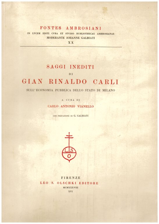 Saggi inediti sull' economia pubblica dello Stato di Milano. A cura di Carlo Antonio Vianello. Con prefazione di G. Galbiati