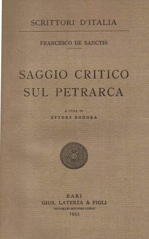 Saggio critico sul Petrarca. A cura di Ettore Bonora | Libros antiguos y modernos | De Sanctis Francesco