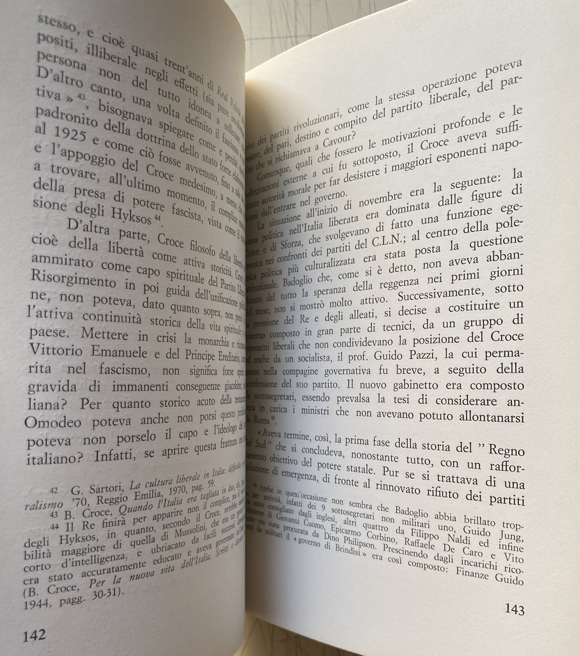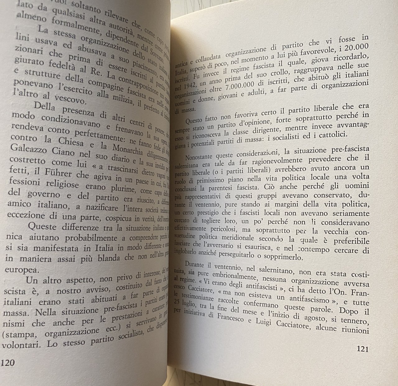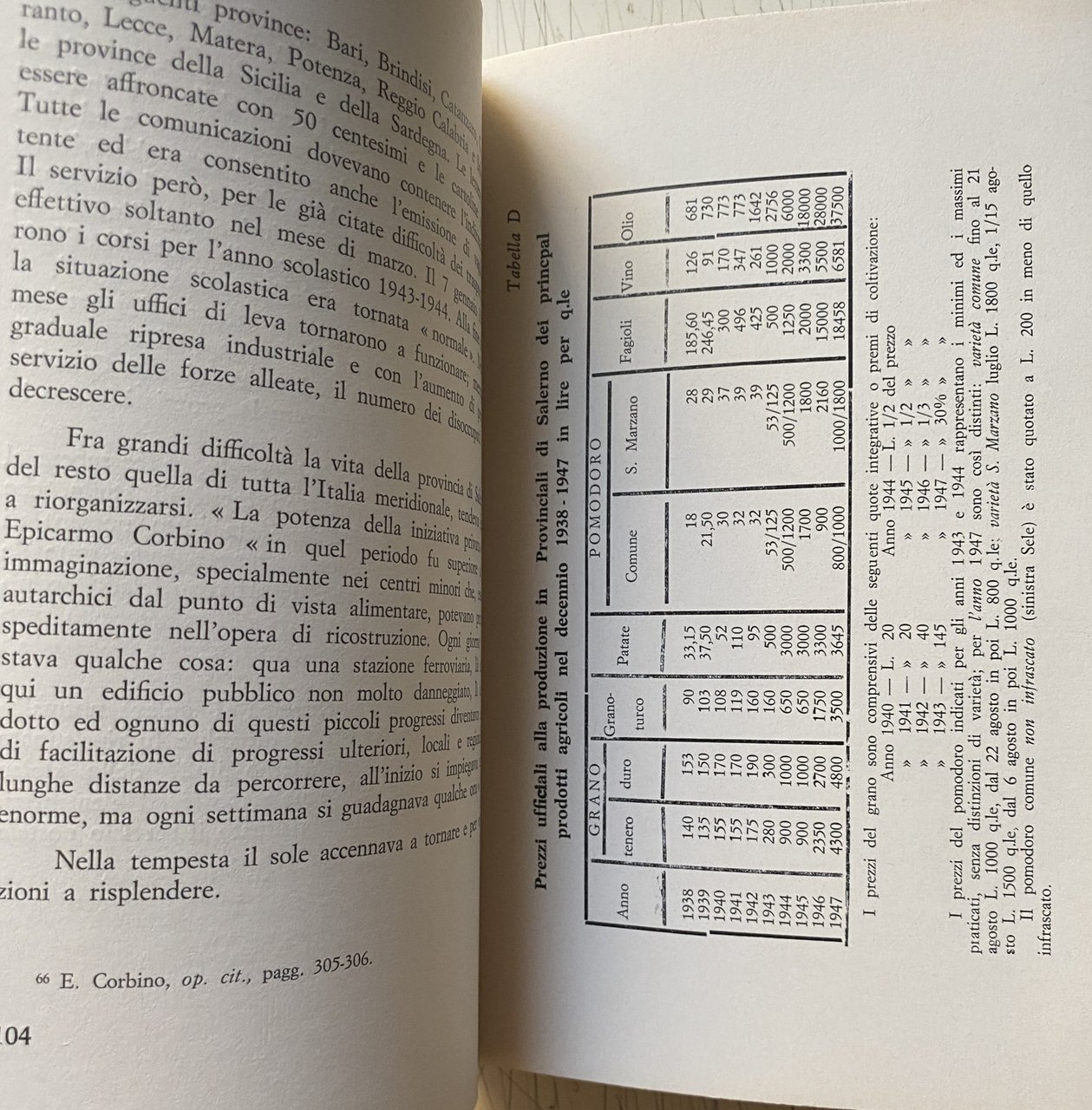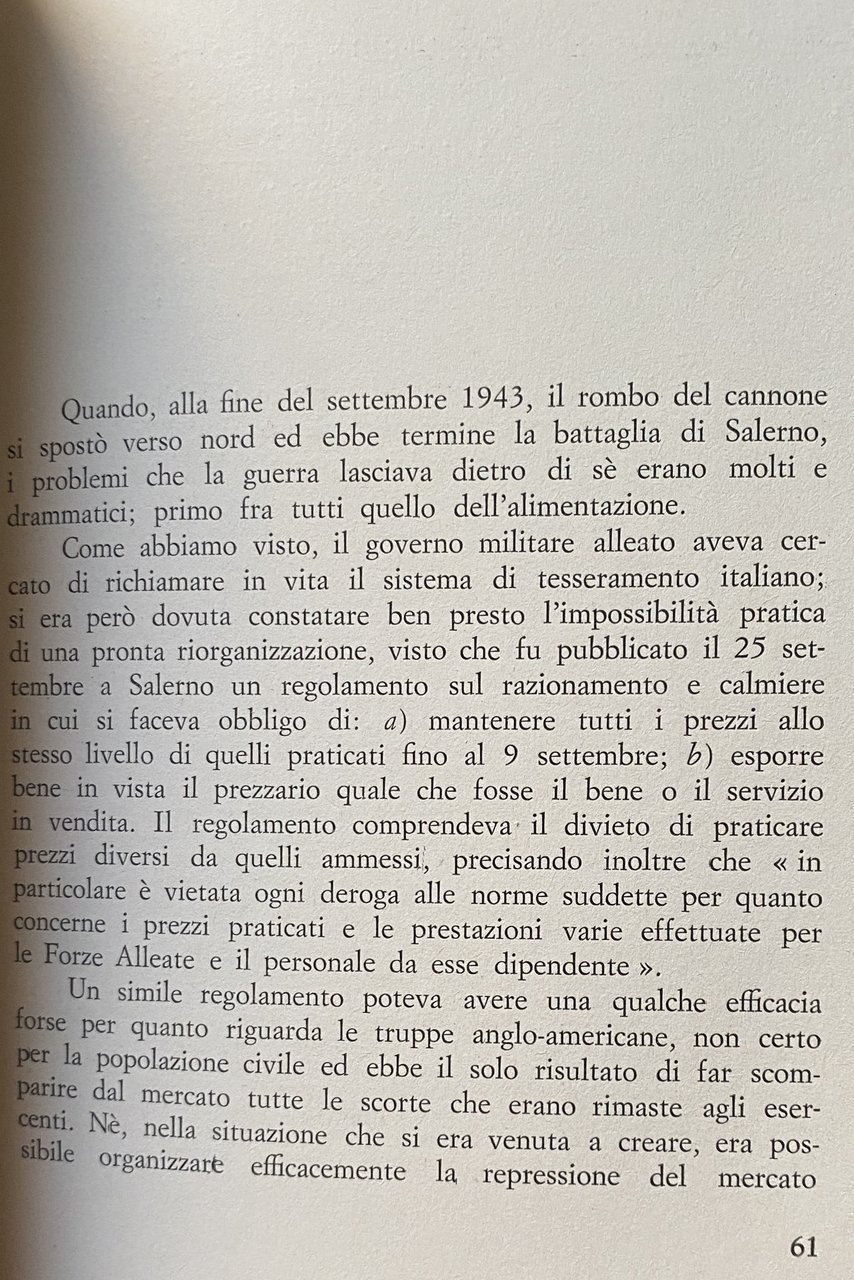 Soggetti: Storia regionale locale e nazionale, Storia contemporanea, Novecento, Storiografia liberale, Seconda Guerra Mondiale, Fascismo, Armistizio, 8 Settembre, Rosario Romeo, Storia militare, Sbarco angloamericano, Salerno, 1943, Politica, Governo, Capitale, Renzo De Felice, Alleati, Americani, Germania, Nazismo, Tedeschi, Resistenza, Libertà, Esercito, Gran Bretagna, Winston Churchill, Benito Mussolini, Re d'Italia, Vittorio Emanuele III, Diplomazia, Burocrazia, Amministrazione Militare Alleata, Economia, Mercato nero, Prezzi, Italia del Sud, Monarchia, 1944, Sede provvisoria, Brindisi, Esecutivo, Agropoli, Carlo Alfani, Territori liberati, Occupazione tedesca, Sottosegretari, Brindisi, Regno del Sud, Decreti, Pietro Badoglio, Potenza, Bari, Umberto di Savoia, Africa, A. Carucci, CLN, Comitato di Liberazione nazionale, Svolta, Tito Zaniboni, Partito comunista, Palmiro Togliatti, Carlo Sforza, Gioacchino Volpe, Mac Mason Farlane, Amedeo Maiuri, Danilo Mannucci, Kesserling, Marxismo, Battaglie sindacali, Sinistra, Fascisti, Lavoro, Quotidiani, Notizie, Cronache, Fonti storiche, Diari, Memorie, Stampa, Editoria, Quotidiani, Nicola Monterisi, Galeazzo Ciano, Harold MacMillan, Nicola Oddati, Francesco Saverio Nitti, Adolfo Omodeo, Mario Parrilli, Ora del Popolo, Azione, L'Avanti, Repubblica di Salò, Dino Philipson, Raffaele Petti, Papa Pio XI, Chiesa, Giulio Rodinò, Vito Reale, Angelo Jervolino, Hull Cordell, Giuseppe Laterza, Lauria, Pasquale Villani, Ugo Spirito, Tito, Aliotta, Amendola, Vincenzo Arangio Ruiz, Ivanoe Bonomi, Girolamo Bottiglieri, Amadeo Bordiga, Luigi Cacciatore, Francesco Caracciolo, Arturo Carucci, Ippolito Ceriello, Cavour, Adolfo Cilneto, Giovanni Cuomo, D'Aniello, Benedetto Croce, Generoso Crisci, Olivier Cromwell, Agostin Degli Espinosa, Gabriele De Rosa, Sartori, Eisenhower, Charles De Gaulle, Andrea Galdo, Nicola Gallerano, Gazzetta del Mezzogiorno, Meridionalismo, Giovanni Gentile, Giolitti, Roberto Capa, Tina Giordano, Hitler, Kesserling, Rappresaglie, Eccidio, Grimaldi, Marino, Gonzaga, Bruno Spampanato, Agricoltura, Commercio, Merci, Prodotti agricoli, Raccolti, Grano, Mais, Avena, Olio, Frutta, Ortaggi, Calmiere, Regolamento, Prezzario, Negozi, Ordine, Approvvigionamento, Crisi, Alloggi, Ricostruzione, Industria, Trasporti, Fabbriche, Ricambi, Bombardamenti, Danni, Inflazione, Socialisti, Comunisti, Lotta di classe, Elezioni, Referendum, Repubblica, Costituzione, Costituente, Raimondo Craveri, Antifascismo, Ebrei, Antisemitismo, Leggi razziali, Persecuzioni, Deportazioni, Deportati, Intellettuali, Dissenso, Consenso, Propaganda, Critica, Prefetto, Disoccupazione, Operai, Contadini, Donne, Vita quotidiana, Epicarmo Corbino, Alimentazione, Carestia, Cibo, Produzione, Scuola, Ripresa economica, Boom, Comunicazione, Prestatori d'opera, Armamenti, Armi, Collaborazionisti, Magistero, Magistratura, Processi, Amnistia, Luigi Sturzo, Concordato, CGL, Sindacati, Scioperi, Sindacalismo, Diritti sociali civili, Quattro giornate, Napoli, Campania, Meuccio Ruini, Alberto Cianca, Giuseppe Saragat, Alcide De Gasperi, Alfonso Menna, Raito, Vietri sul Mare, Silvio Bertoldi, Controstoria, A. Placanica, Istituzioni, Società, Studi universitari, Scuola Medica Salernitana, Università, Francesco De Sanctis, Raffaele Guariglia, Palazzo Pinto, Palazzo Natella, Luogotenente Generale, Riferimento, Saggi storici, Consultazione, Collezionismo, Libri rari Vintage fuori catalogo, Bibliografia, Quinta Armata, Thomas Aloysius Lane, Autorità, Questione alimentare, Razionamento, Pane, Stato, Democrazia, Poste e Telegrafi, Presidente del Consiglio dei Ministri, Democrazia Cristiana, Monsignor Monterisi, Opposizione, Parrilli, Roosevelt, Fazioni, Sarno, Esercenti, Truppe, Esuli, Legalità, Estremismo bordighista, l'Unità, Trotzkismo, Disciplina, Eugenio Reale, Regional and national history, Contemporary history, Twentieth century, Liberal historiography, Second World War, Fascism, Armistice, September 8, Military history, Anglo-American landing, Politics, Government, Capital, Allies, Americans, Germany, Nazism, Germans, Resistance, Freedom, Army, Great Britain, King of Italy, Victor Emmanuel III, Diplomacy, Bureaucracy, Allied Military Administration, Economy, Black Market, Prices, Southern Italy, Monarchy, Temporary Headquarters, Brindisi, Executive, Agropoli, Liberated Territories, German Occupation, Undersecretaries, Southern Kingdom, Decrees, Savoy, National Liberation Committee, Turning point, Communist Party, Union battles, Left, Fascists, Labour, Newspapers, News, Chronicles, Historical sources, Diaries, Memoirs, Press, Publishing, Newspapers, Pope Pius XI, Church, Southernism, Reprisals, Massacre, Agriculture, Commerce, Goods, Agricultural products, Crops, Wheat, Corn, Oats, Oil, Fruit, Vegetables, Calmer, Regulation, Price list, Shops, Order, Supply, Crisis, Lodgings, Reconstruction, Industry, Transport, Factories, Parts, Bombing, Damage, Inflation, Socialists, Communists, Class Struggle, Elections, Republic, Constitution, Constituent Assembly, Anti-fascism, Jews, Anti-Semitism, Racial Laws, Persecutions, Deportations, Deportees, Intellectuals, Dissent, Consent, Criticism, Prefect, Unemployment, Workers, Peasants, Women, Daily life, Epicarmo Corbino, Nutrition, Famine, Food, Production, School, Economic recovery, Communication, Workers, Armaments, Arms, Collaborators, Magisterium, Judiciary, Trials, Amnesty, Concordat, Unions, Strikes, Syndicalism, Civil social rights, Four days, Naples, Counterhistory, Institutions, Society, University studies, Medical School, University, Lieutenant General, Reference, Historical essays, Consultation, Collecting, Out-of-print rare books, Bibliography, Fifth Army, Authority, Food question, Rationing, Bread, State, Democracy, Post Telegraph, President of the Council of Ministers, Christian Democracy, Opposition, Factions, Merchants, Troops, Exiles, Legality, Extremism, Unity, Trotskyism, Discipline