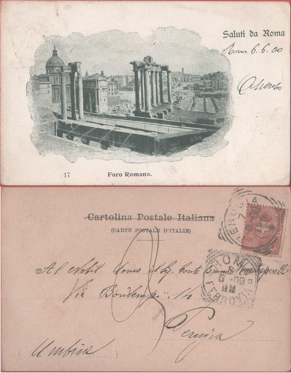 Saluti da Roma. Foro romano. Viaggiata 1900