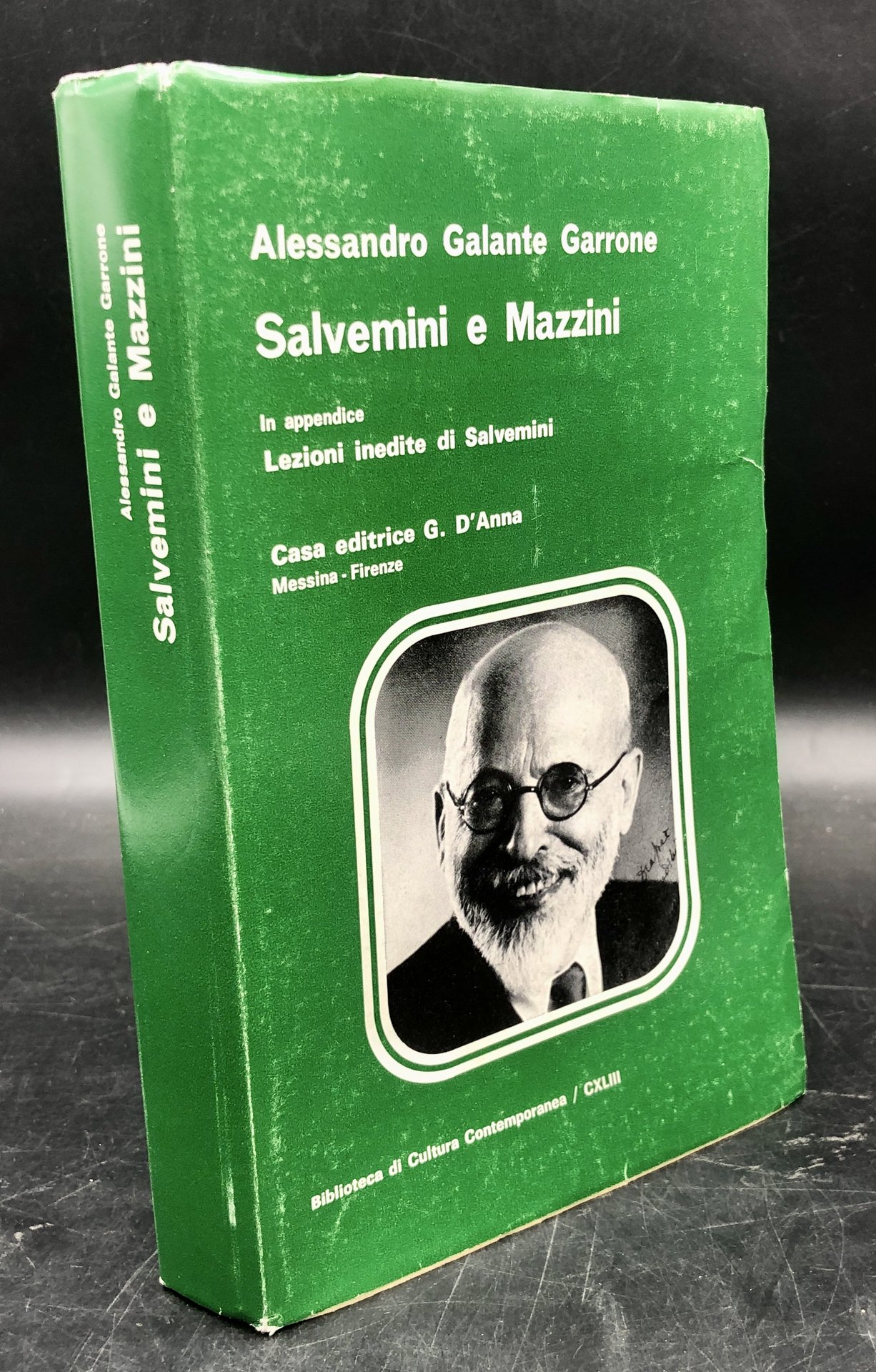 In-8° (cm. 22,7x14,5), pp. 516 + 4 RITRATTI in 4 tavole b.n. fuori testo (uno dei quali con Galante Garrone, che conobbe Salvemini nel 1947 e tenne poi con lui assidua corrispondenza, incitandolo a studiare l'influenza del Sansimonismo su Mazzini e i contrasti con Buonarroti. Cartoncino leggero editoriale, sovraccoperta con ritratto, ex libris al verso del piatto. GALANTE GARRONE, storico, scrittore, magistrato e partigiano, militante antifascista durante il Ventennio e combattente della Resistenza italiana. È considerato uno dei padri fondatori della Repubblica Italiana, fu anche studioso di Babeuf, di Filippo Buonarrotie dei rivoluzionarei dell'Ottocento. Ottimo esemplare.