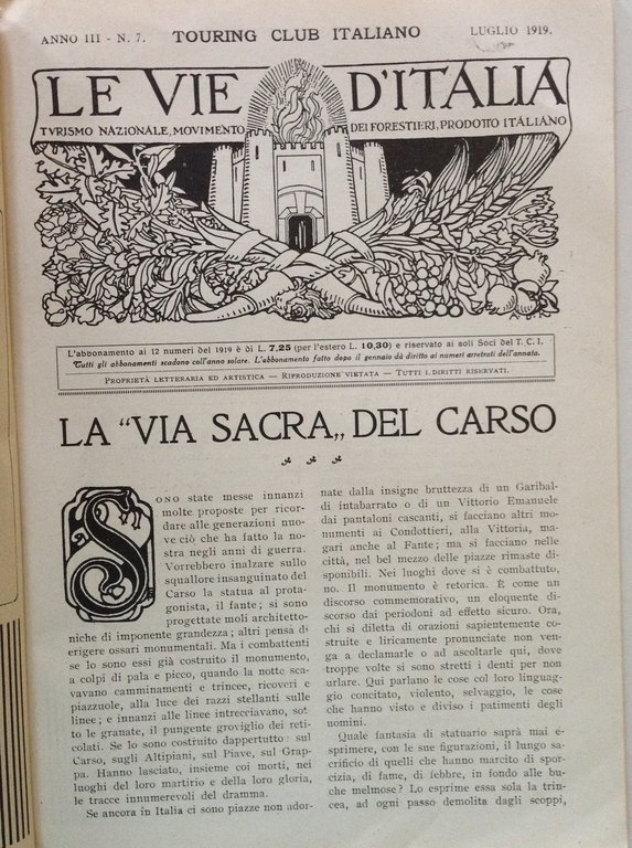 Sartori La Via Sacra del Carso Touring Club Vie d'Italia n 7 Luglio 1919