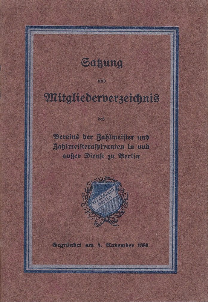 Satzung des Vereins der Zahlmeister und Zahlmeisteraspiranten in und außer Dienst zu Berlin in dem in der ordentlichen Hauptversammlung am 13. Januar 1925 festgelegten Wortlaut.